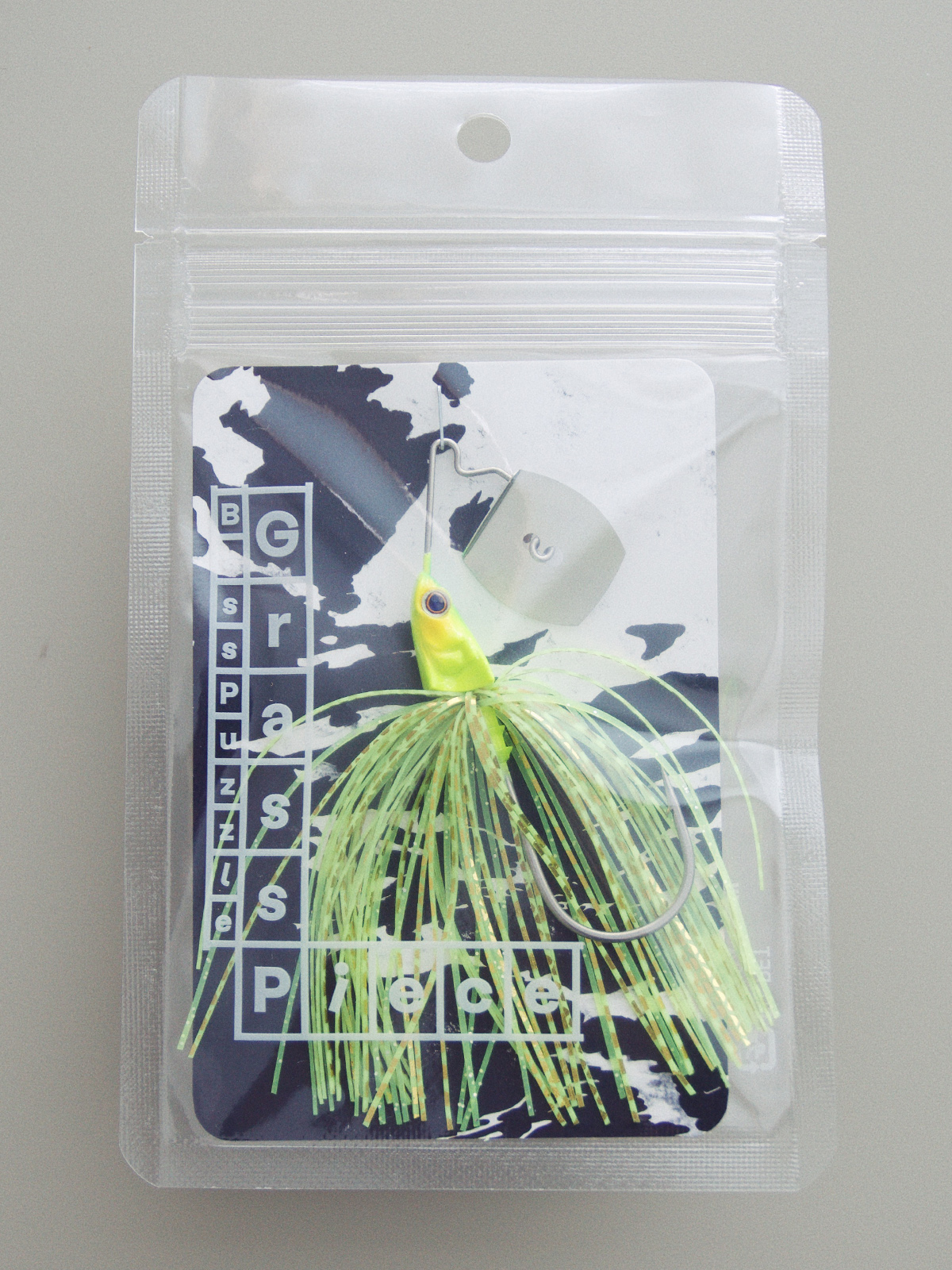 グラスピースは、スピナーベイトとチャターベイトの交雑種です。ワームが不要で、全くチドらない直進性の高さはスピナベ譲り。飛行姿勢が安定してよく飛び、バイブレーションが強くブルブル感が明確なのはチャターの血統。キレとレスポンスが抜群の、0.2㎜極薄ブレードを採用した第三のシャローカバーベイトです。