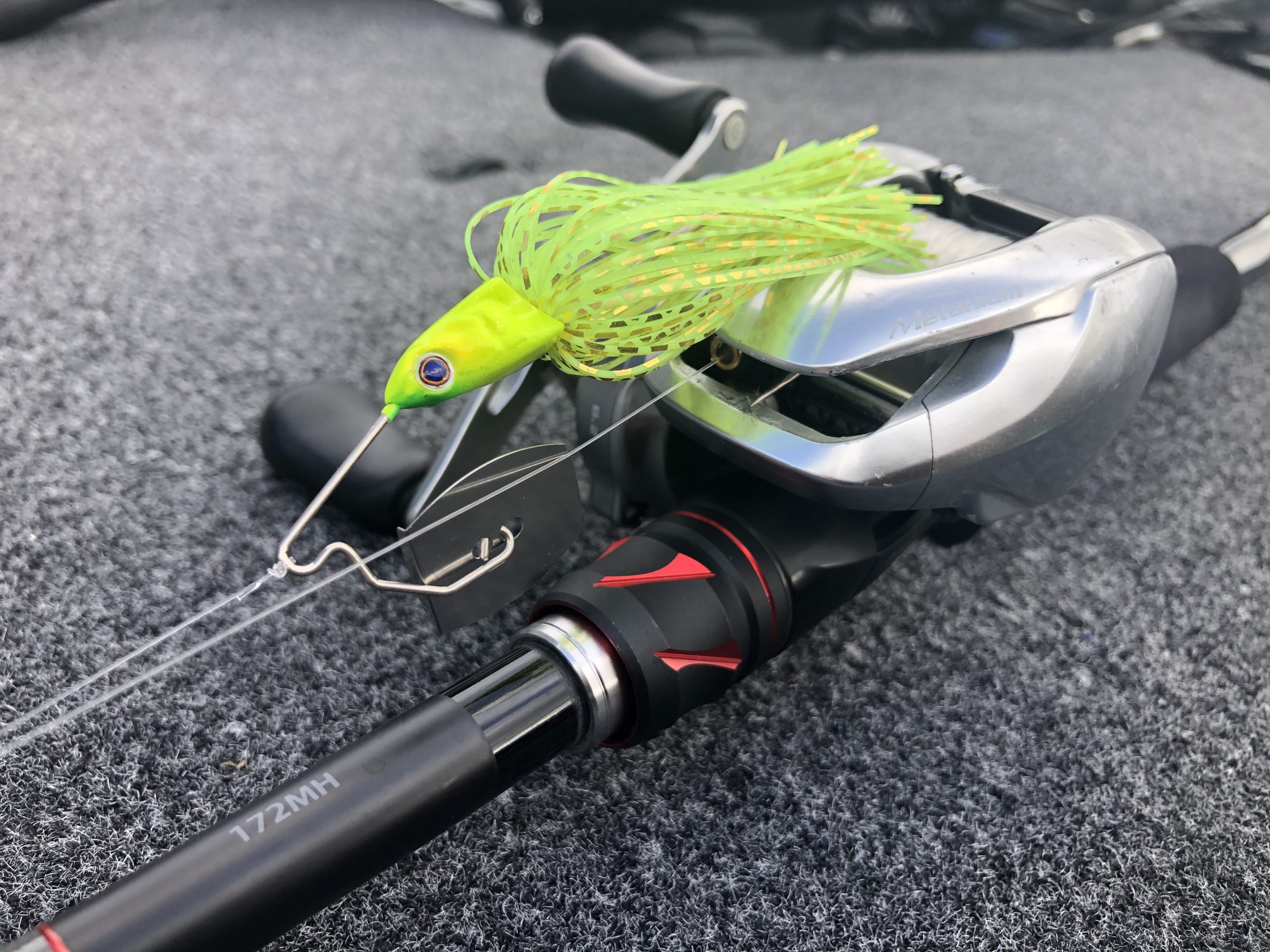 1.0㎜のハードステンワイヤーとショートアームの組み合わせにより、一般的なスピナーベイトと比べて魚を掛けた後の変形が最小限に抑えられています。